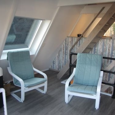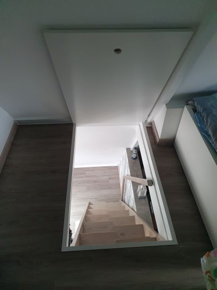 Tussen de 2 kamers bevindt zich de trap (met afsluitbaar luik)